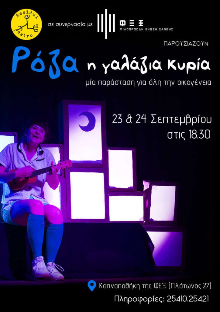 Αρχική «Ρόζα, η γαλάζια Κυρία»: Το Σάββατο και την Κυριακή στην Καπναποθήκη της ΦΕΞ αφισα Ροζα Ξανθη