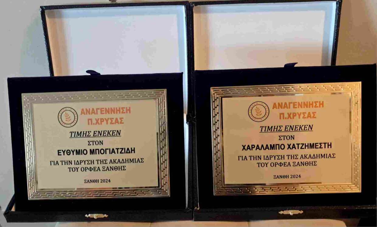 Αρχική Βραβεύτηκαν Χατζημεστής και Μπογιατζίδης για την ίδρυση της Ακαδημίας Ποδοσφαίρου του Ορφέα vraveia