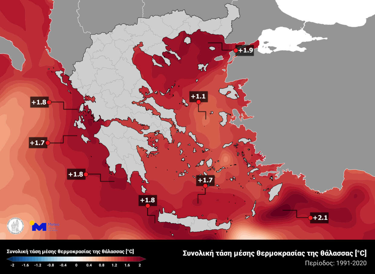 Αρχική Τριάντα χρόνια δεδομένων αποκαλύπτουν την εξέλιξη της κλιματικής αλλαγής στην Ελλάδα sst_cumulative_trend_1991_2020_1_2