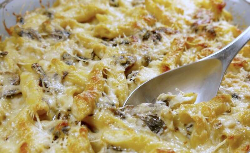Ανακατεύετε το μίγμα με τις βρασμένες πέννες και την μπεσαμέλ ή την κρέμα γάλακτος και το μεταφέρετε σε λαδωμένο πυρίμαχο σκεύος.