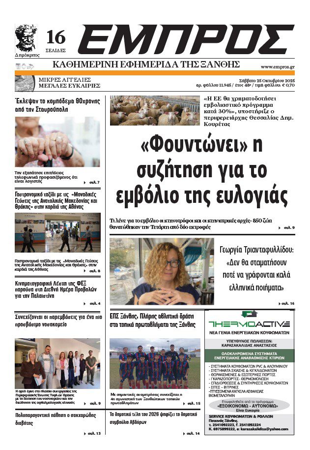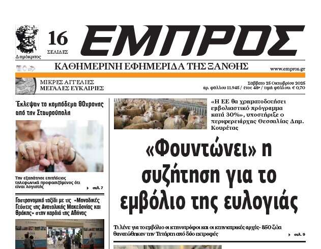 Αρχική Πρωτοσέλιδα Σάββατο 25 Οκτωβρίου 2025, Αρ.Φύλλου 11.945