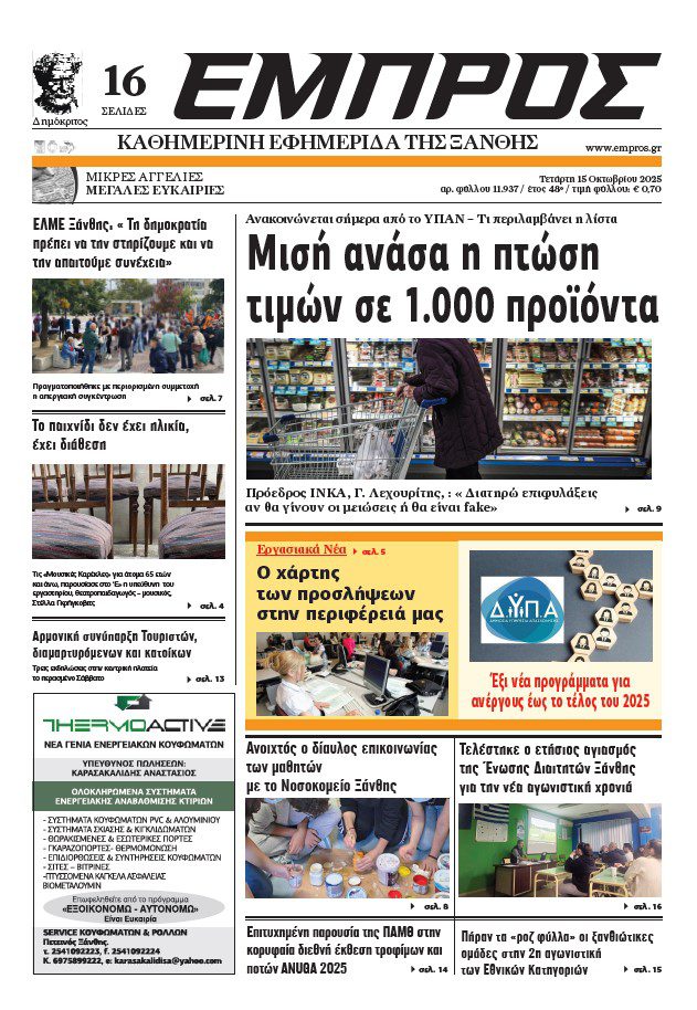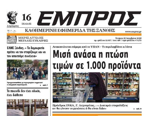 Τετάρτη 15 Οκτωβρίου 2025, Αρ.Φύλλου 11.937