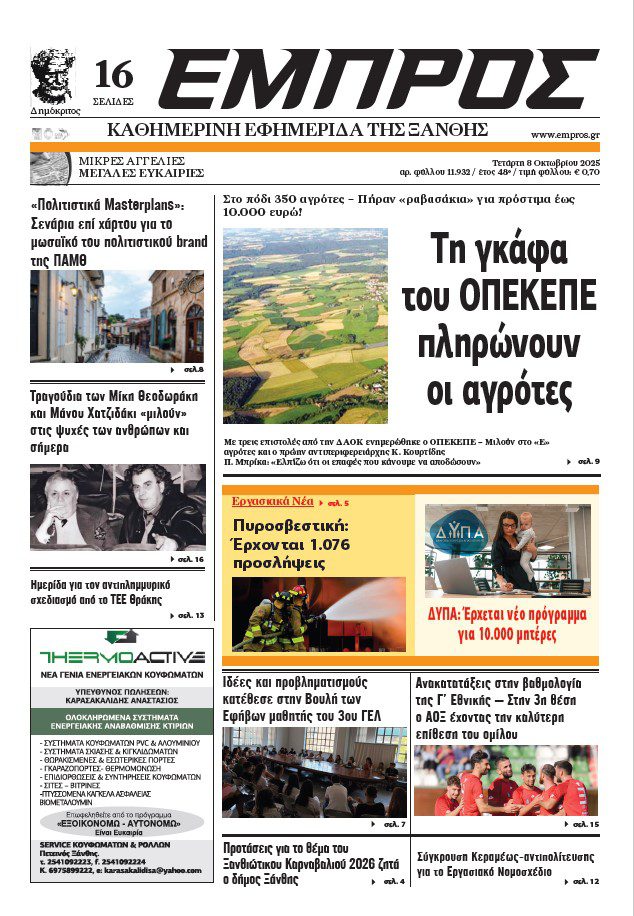 Τετάρτη 7 Οκτωβρίου 2025, Αρ.Φύλλου 11.932