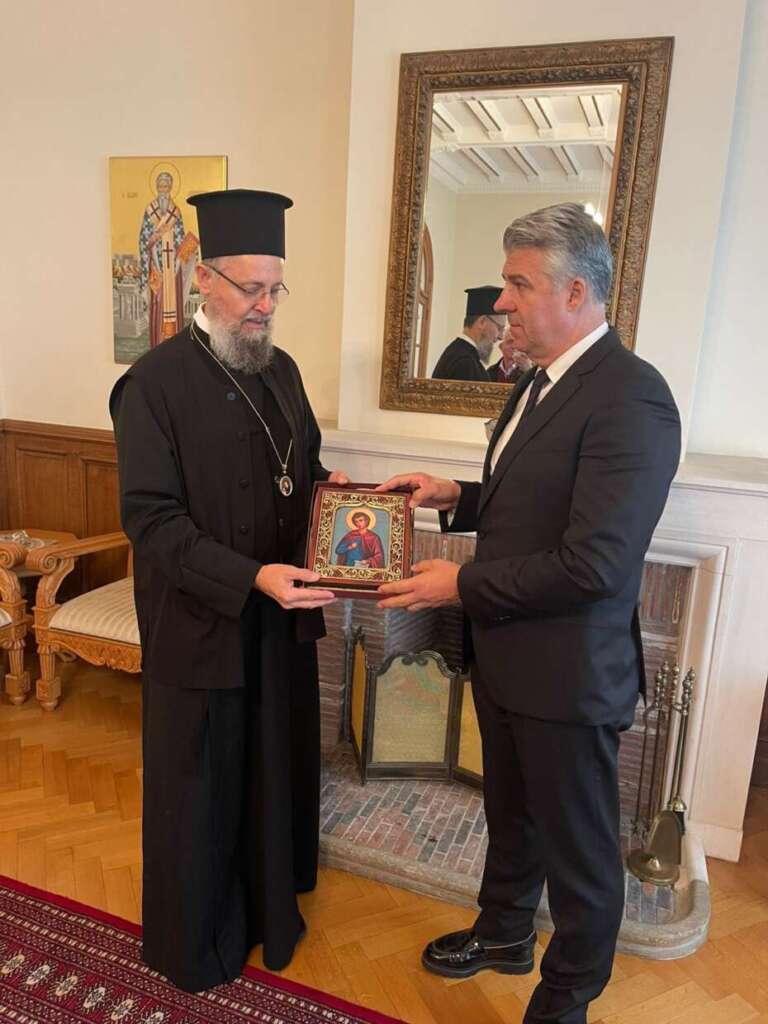 Τέλος, στο πλαίσιο των επαφών του στις Βρυξέλλες, ο Περιφερειάρχης έγινε δεκτός από τον Επίσκοπο Τανάγρας κ. Απόστολο, διευθυντή του Γραφείου της Αντιπροσωπείας της Εκκλησίας της Ελλάδος, με τον οποίο συζήτησε για τη λειτουργία του Γραφείου της ΠΑΜΘ στις Βρυξέλλες και την πορεία των έργων που υλοποιούνται στην Περιφέρεια.