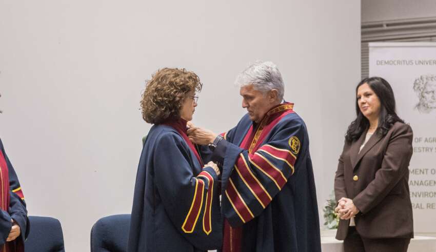 Με ιδιαίτερη λαμπρότητα πραγματοποιήθηκε στην Ορεστιάδα η τελετή αναγόρευσης της Λουκίας Σαράντη, Προέδρου της ΑΚΡΙΤΑΣ Α.Ε. και του Συνδέσμου Βιομηχανιών Ελλάδος, σε Επίτιμη Διδάκτορα του Τμήματος Δασολογίας και Διαχείρισης Περιβάλλοντος και Φυσικών Πόρων του ΔΠΘ.