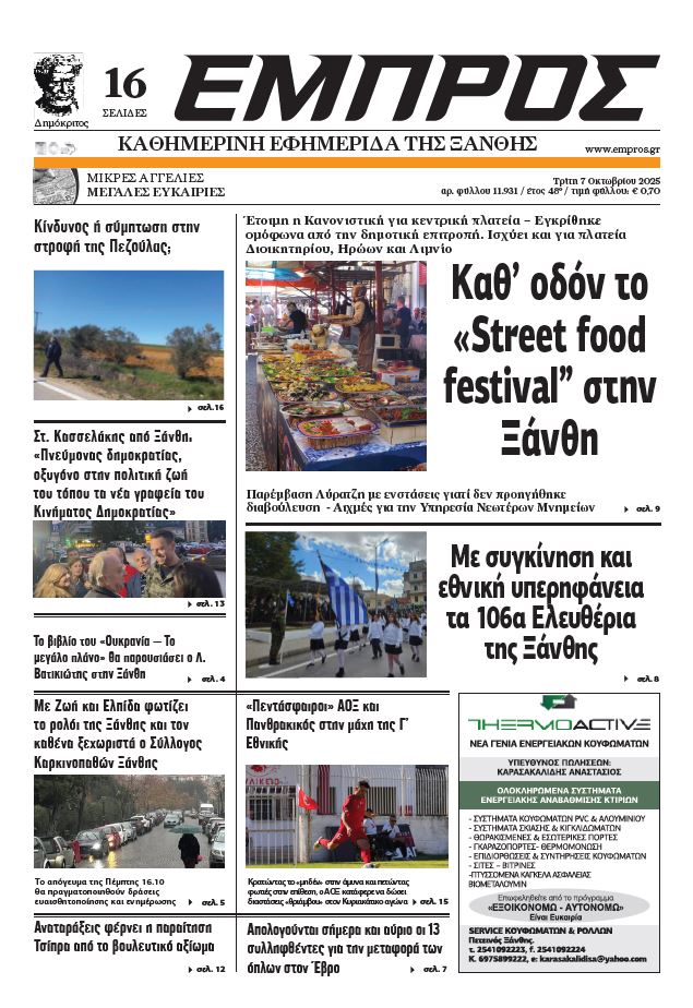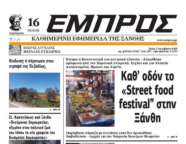 Αρχική Πρωτοσέλιδα Τρίτη 7 Οκτωβρίου 2025, Αρ.Φύλλου 11.931