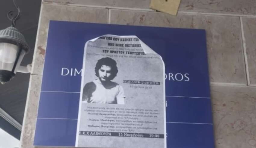 Με ανάρτησή του στα μέσα κοινωνικής δικτύωσης, ο Γρηγόρης Δημητριάδης κατήγγειλε ότι άγνωστοι κόλλησαν αφίσα στην πινακίδα του γραφείου του στα Ιωάννινα, η οποία αφορούσε εκδήλωση «προς τιμήν ενός τρομοκράτη» όπως σχολιάζει χαρακτηριστικά.