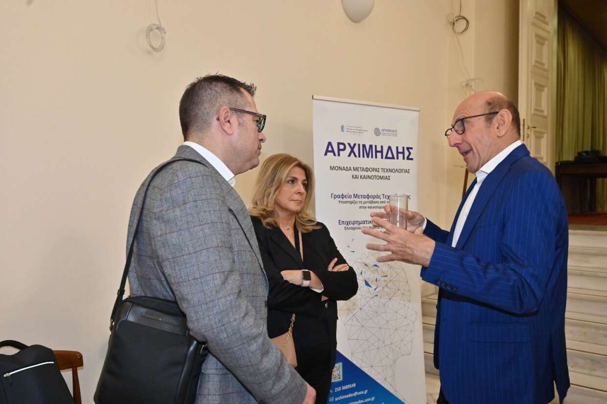 Την εκδήλωση άνοιξε με χαιρετισμό ο Καθηγητής Αριστείδης Σάμιτας, Αντιπρύτανης Οικονομικών και Ανάπτυξης του ΕΚΠΑ και Επιστημονικός Υπεύθυνος της Πράξης. Σύντομες τοποθετήσεις απηύθυναν ο Υφυπουργός Ανάπτυξης, αρμόδιος για θέματα Έρευνας και Καινοτομίας, κ. Σταύρος Καλαφάτης, ο Καθηγητής Δημήτριος Καινούριος, μέλος του Συμβουλίου Διοίκησης του ΕΚΠΑ, ο Ομότιμος Καθηγητής Σταύρος Θωμαδάκης από το Ίδρυμα Ιατροβιολογικών Ερευνών της Ακαδημίας Αθηνών, ο Δρ Αντώνιος Γυπάκης από τη Γενική Γραμματεία Έρευνας και Τεχνολογίας και η κα. Σοφία Τσακίρη, Πρόεδρος του ΤΕΣ Μεταφοράς Τεχνολογίας & Διανοητικής Ιδιοκτησίας του ΕΣΕΤΕΚ.