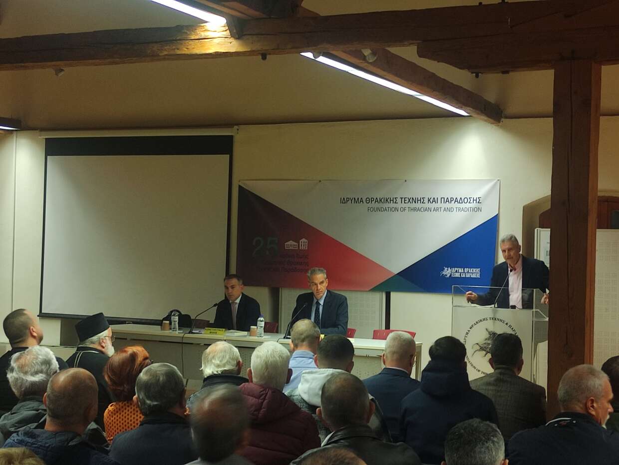 Σε γεμάτη αίθουσα πραγματοποιήθηκε, το Σάββατο 15 Νοεμβρίου 2025, η εσπερίδα του Ιδρύματος Θρακικής Τέχνης και Παράδοσης, με θέμα τις σύγχρονες γεωπολιτικές εξελίξεις και, κυρίως, την κατάσταση των ελληνοτουρκικών σχέσεων. Ομιλητές ήταν ο Κωνσταντίνος Φίλης, Διευθυντής Ερευνητικών Προγραμμάτων του ΙΔΙΣ και Πρόεδρος Δ.Σ. του ΙΘΤΠ, και ο Άγγελος Συρίγος, Καθηγητής Διεθνούς Δικαίου, βουλευτής και μέλος του ΔΣ ΙΘΤΠ. Την εκδήλωση παρακολούθησαν εκπρόσωποι τοπικών αρχών, πολλοί συμπολίτες, ενώ επίσημος προσκεκλημένος ήταν και ο ευρωβουλευτής της ΝΔ, Φρέντη Μπελέρης.